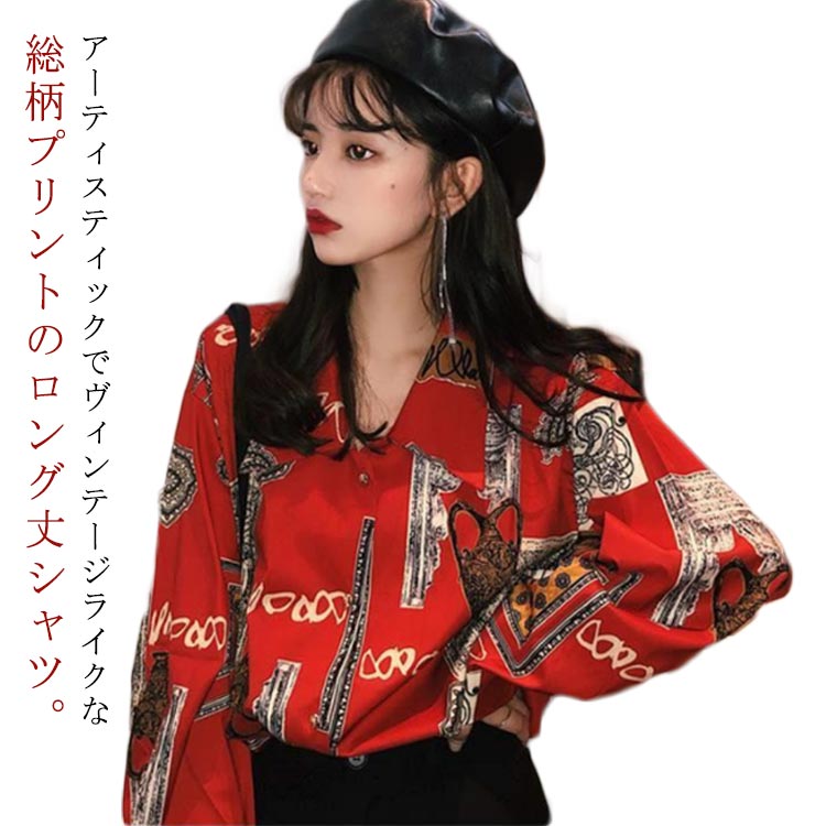 柄シャツ シャツ トップス 長袖 レトロ ヴィンテージシャツ レディース 春 夏 秋 冬 総柄 大人可愛い