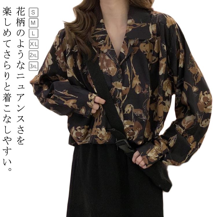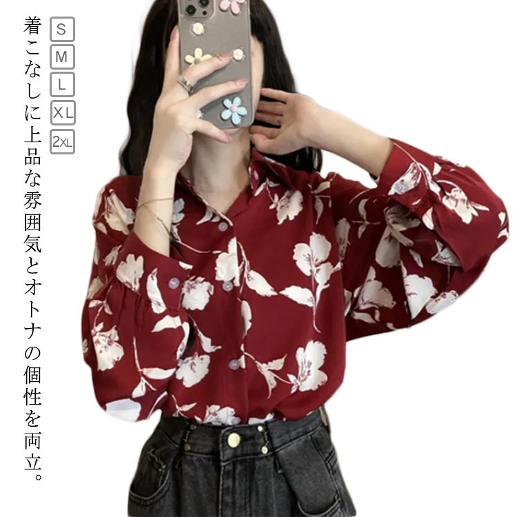 花柄シャツ 長袖 トレンド シャツ トップス ブラウス 花柄 フラワー フェミニン 可愛い トップス レディース 大きいサイズ