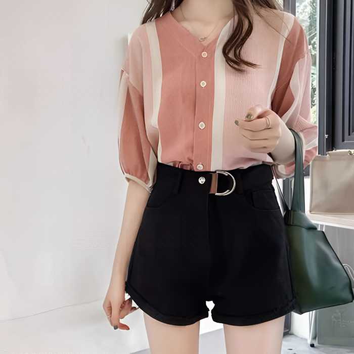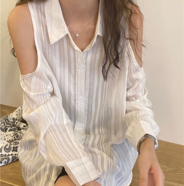 きれいめ レディース ファッション 韓国 ファッション レディース トップス ブラウス シャツ 秋 冬 春 カジュアル オープンショルダー 肌見せ セルフストライプ 夏トップス かっこいい服 個性的