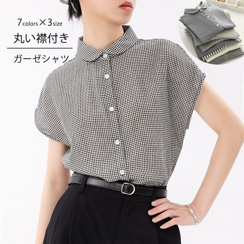 アレルギー体質でもOK、肌に優しいガーゼシャツ 綿シャツ シャツブラウス 夏 ノースリーブ 柔らか ダブルガーゼ 体型カバー ゆったり カジュアル 30代 40代