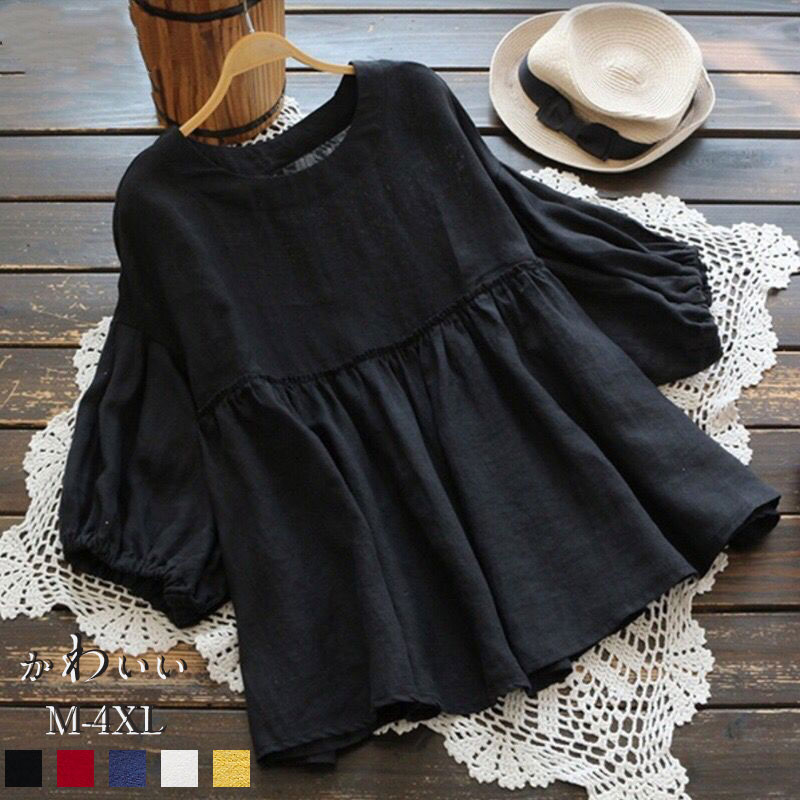 ペプラムブラウス フリルブラウス フレアブラウス 半袖ブラウス ギャザー ブラウス シャツ 夏 プルオーバー トップス フリル ペプラム 五分袖 かわいい ライン 春夏 大人可愛い