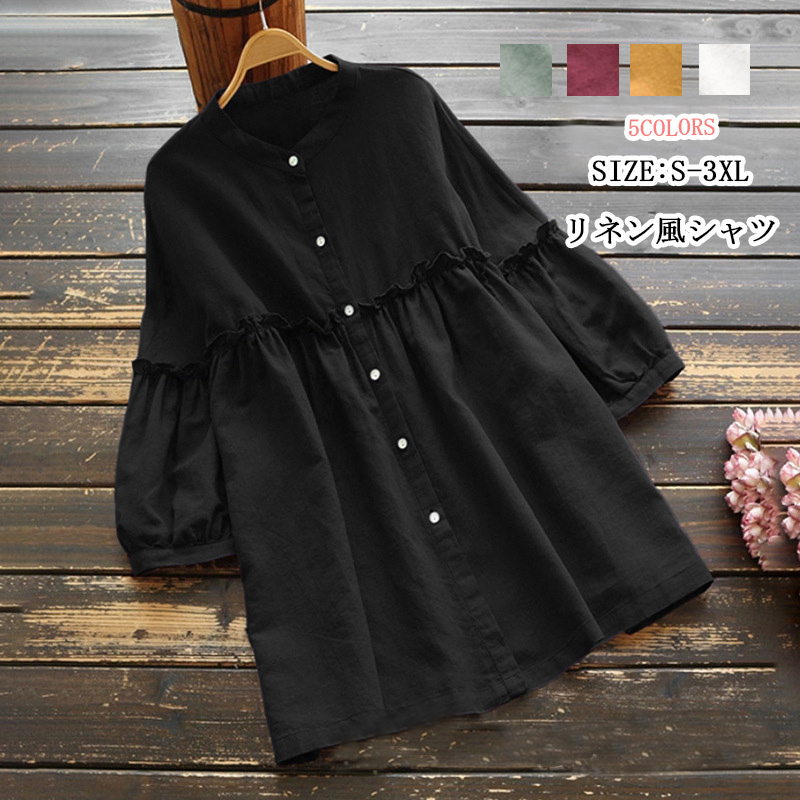 大人可愛いチュニック シャツブラウス 涼しい 通気性がいい 体型カバー ロングシャツトップス 体型カバー ゆったりシャツ 羽織 ギャザー 黒 グリーン レッド 黄色 ビッグシルエット