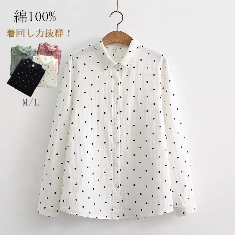 ブラウス 綿100 シャツ トップス カットソー 長袖シャツ チュニック 通気性 おしゃれ カジュアル かわいい きれいめ こなれ シンプル フェミニン 抜け感 コットン