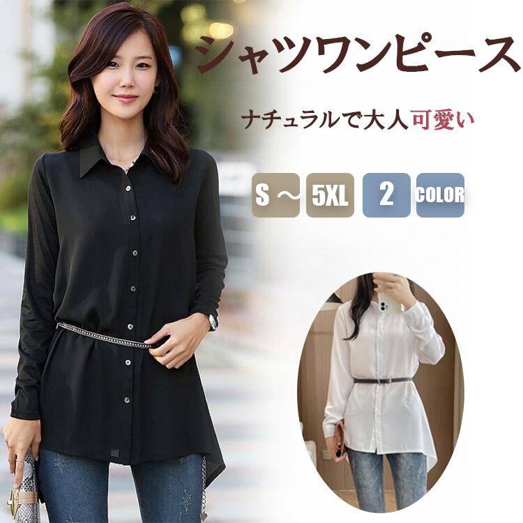 シフォンシャツ シャツブラウス ロング丈 チュニックシャツ ゆるシャツ シャツワンピ ウィメンズ トップス シースルー ポリエステル 春夏 秋冬 羽織 体型カバー 20代 30代 40代 50代