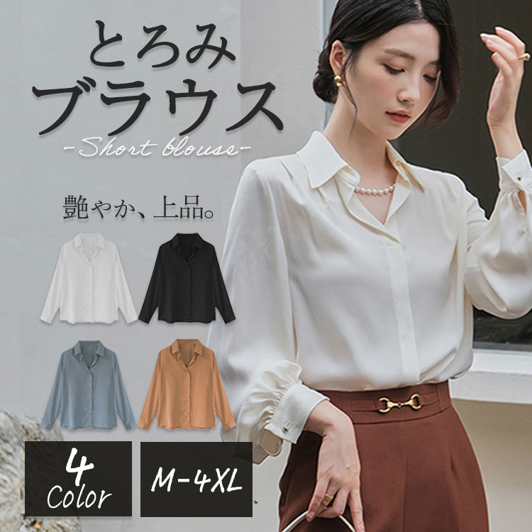 とろみシャツ Yシャツ フォーマルブラウス トップス スーツ インナー 薄手 大人 可愛い ナチュラル かわいい 上品 ママ 就活 面接 リクルート 演奏会 セレモニー グレー