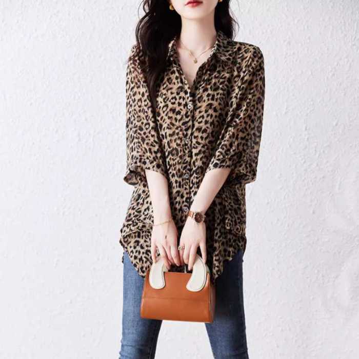 きれいめレディースファッション トップス 大きいサイズ 2 3 4 5 ビックシルエット アニマルプリントシャツ 20代 30代 40代 50代 カジュアル 春 夏 秋 冬