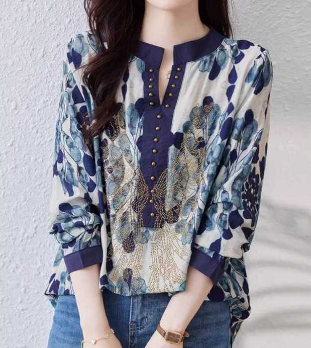 きれいめレディースファッション トップス 大きいサイズ M L XL 2XL 3XL 4XL ボタニカル柄 シャツ リヨセル繊維 大人シャツ 柄 ブイネック 20代 30代 40代 50代 オフィス