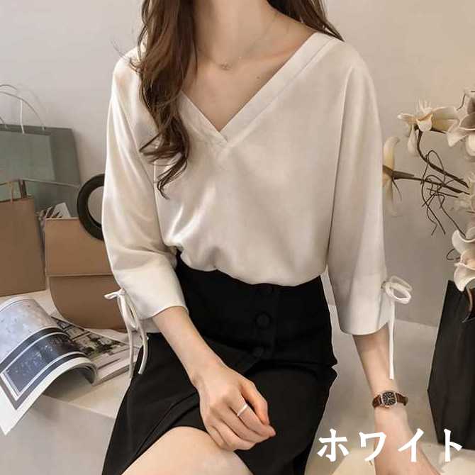きれいめレディースファッション トップス 大きいサイズ 2 3 4ブイネック シフォンシャツ 20代 30代 40代 50代 春 夏 秋 冬 シンプル 大人シャツ3カラーホ
