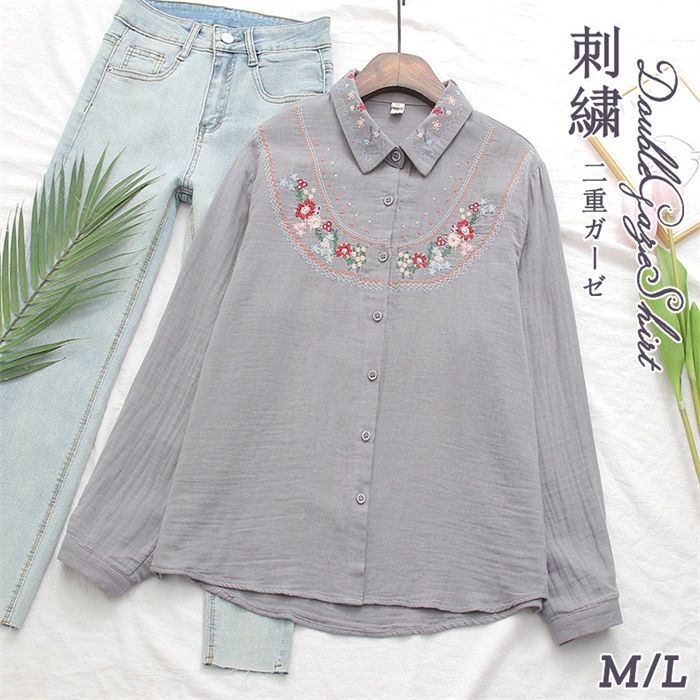2重ガーゼ シャツ シャツブラウス 綿100% 刺繍 ガーゼシャツ ダブルガーゼ レディース 刺繍シャツ ブラウス 綿 チュニック ゆったり