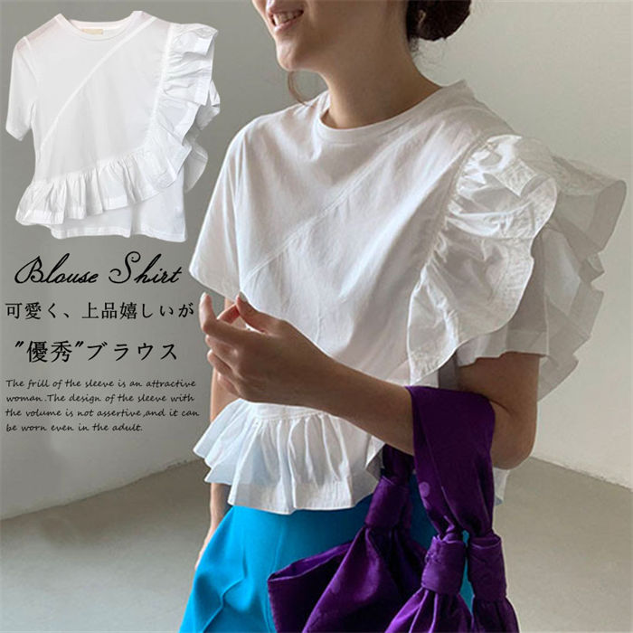 袖のフリルがアクセントになった女性らしい一枚 程よくボリュームのあるお袖のデザインは、主張しすぎず、大人でもお洒落に着こなせます