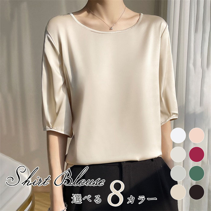 きれいめブラウス 1枚で主役級 スーツのインナーに オフィス 通勤 入学 入園 卒業 卒園式 七五三 ブラウス レディース tシャツ トップス クルーネック 春 夏