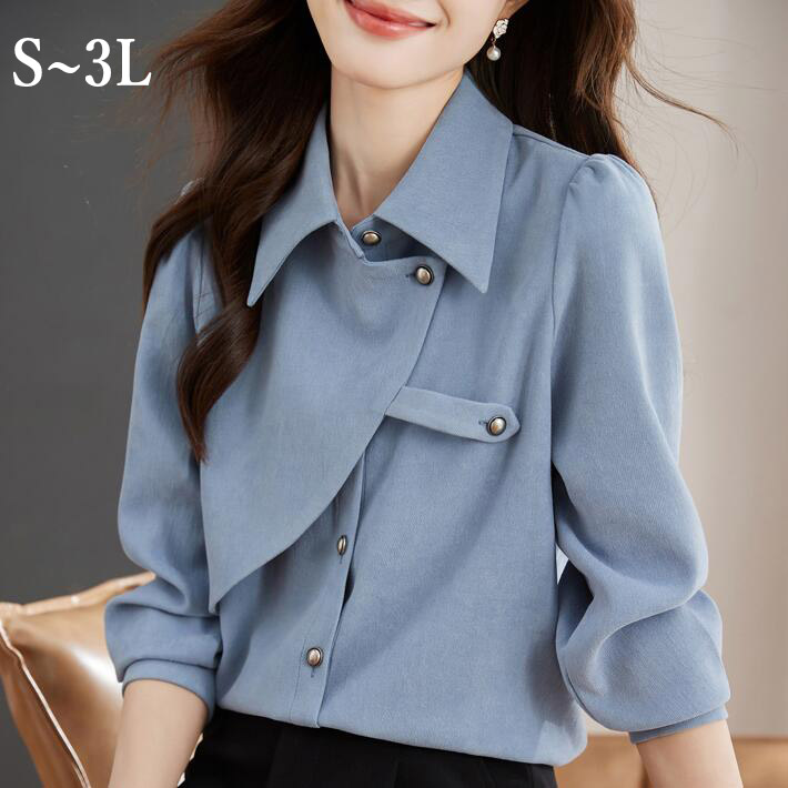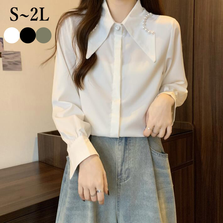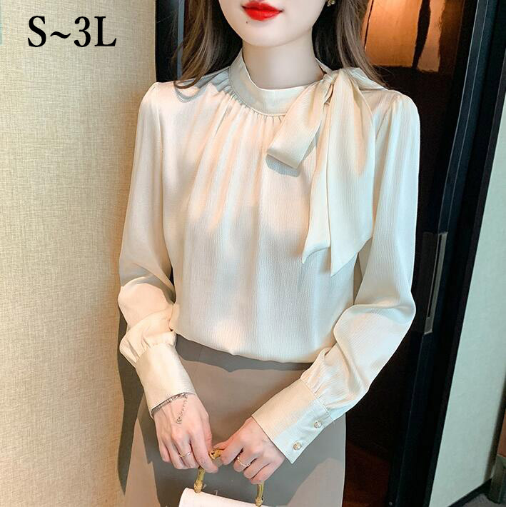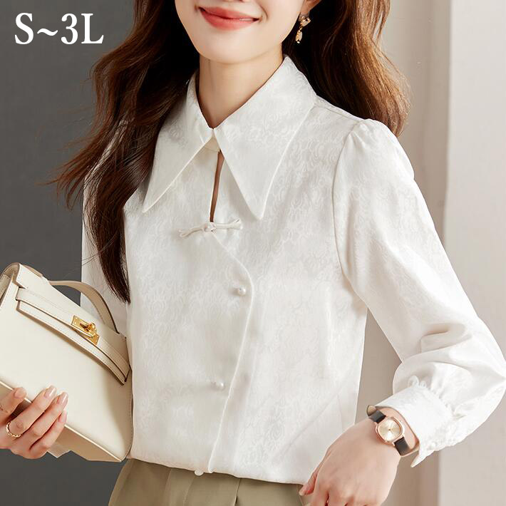 ブラウスシフォン レディース春秋シャツパールトップス長袖大きいサイズ小さいサイズオシャレオフィスフォマールOL S M L2L3L