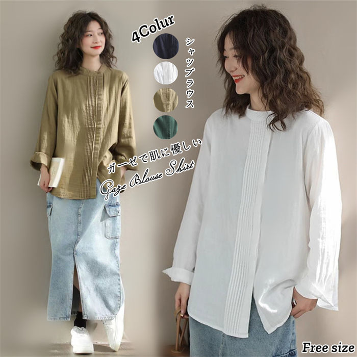 ガーゼ シャツ レディース ブラウス 綿 ガーゼシャツ コットン シャツブラウス シャツ ブラウス 綿 チュニック ゆったり プルオーバー