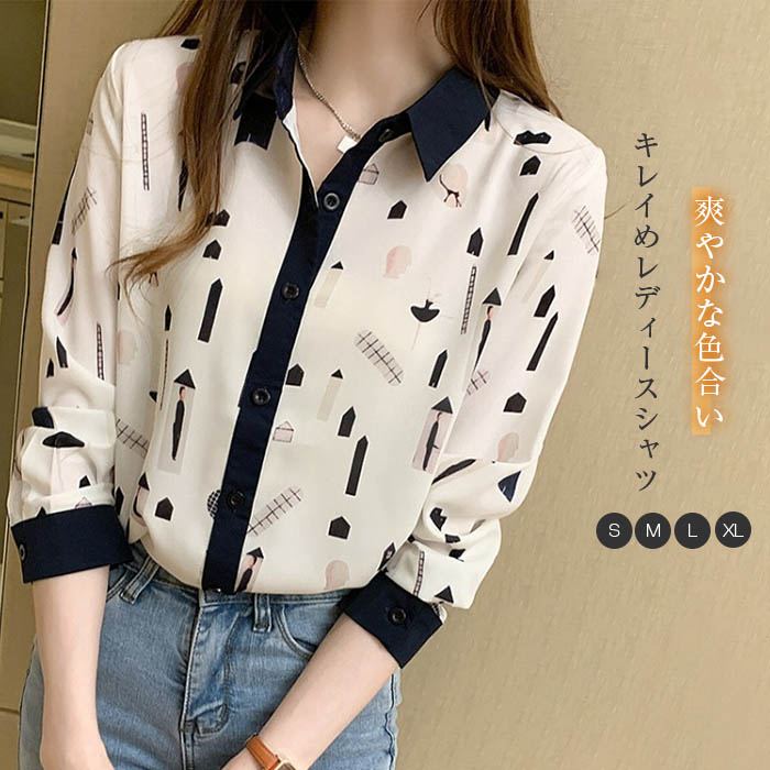シャツ 秋 レディース 長袖 柄トップス レディースシャツ シャツブラウス 総柄シャツ 長袖シャツ 羽織り お洒落シャツ ブラウス 長袖トップス レディーストップス