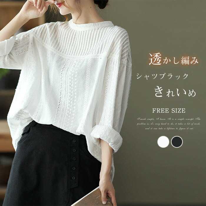 シャツ ブラウス レディース 長袖 春 秋 冬 きれいめ ギャザー ドルマンスリーブ シャツブラウス 透かし編み 刺繍 ゆったり オーバーサイズ プルオーバー トップス Tシャツ ゆる