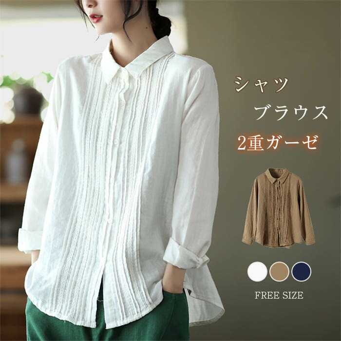 シャツ ブラウス レディース 長袖 きれいめ 2重ガーゼ シャツブラウス レディース 春 秋 冬 レース ゆったりおしゃれ トップス 可愛い 無地 カジュアル 秋トップス 体型カバー