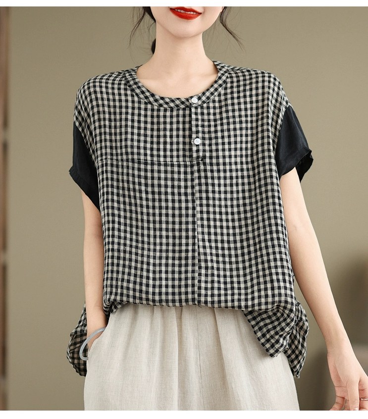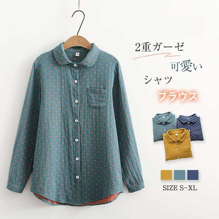 シャツ ブラウス レディース 長袖 可愛い 秋 冬 春 丸襟 総柄 ガーゼコットン チェック シャツ ブラウス 長袖 レトロ トップス ガーゼ カジュアル ゆったり 2重ガーゼ