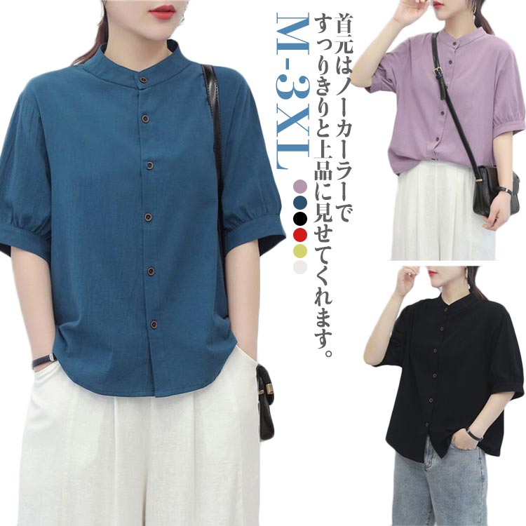 大きいサイズ ブラウス レディース カジュアルシャツ 薄手 夏 ノーカラーレディースファッション トップス シャツ ブラウス