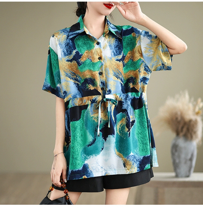 ゆったりオーバーシルエットでサッと羽織れる彼シャツ風 花柄シャツ カットソー ブラウス チュニック 薄手 レディース 春夏