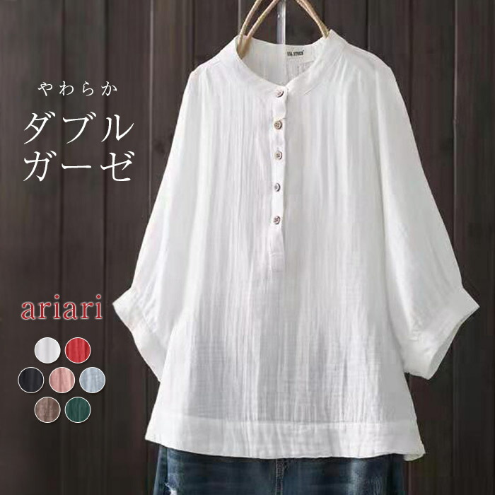 ガーゼ ブラウス レディース シャツ カジュアル ナチュラル プルオーバー 半袖 トップス ゆったり チュニック 大きいサイズ 春 夏 大人 30代 40代 50代