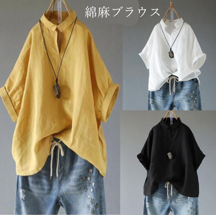 レディースシャツ トップス 綿麻ブラウス 普通着 デート 春夏 通勤 女子会 五分袖 お出かけ 上品 シンプル カジュアル オシャレ ファション
