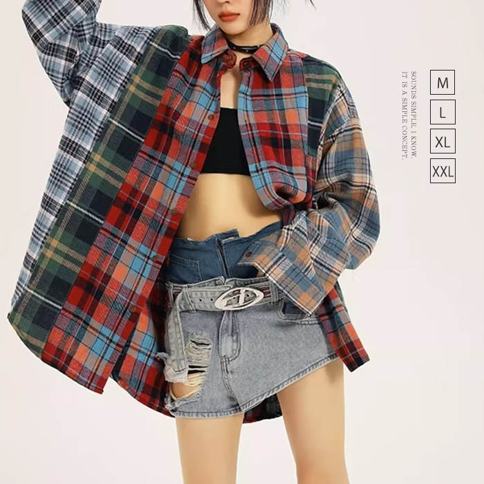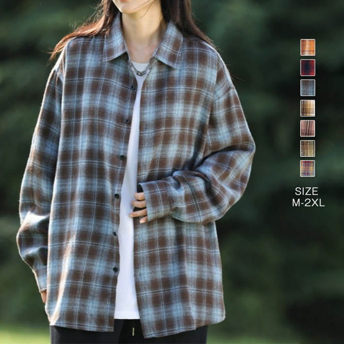 シャツ レディース ブラウス 春 秋 長袖 チェック シャツブラウス 配色 トップス 大きサイズ 前開き 羽織り シンプル カジュアル 春秋