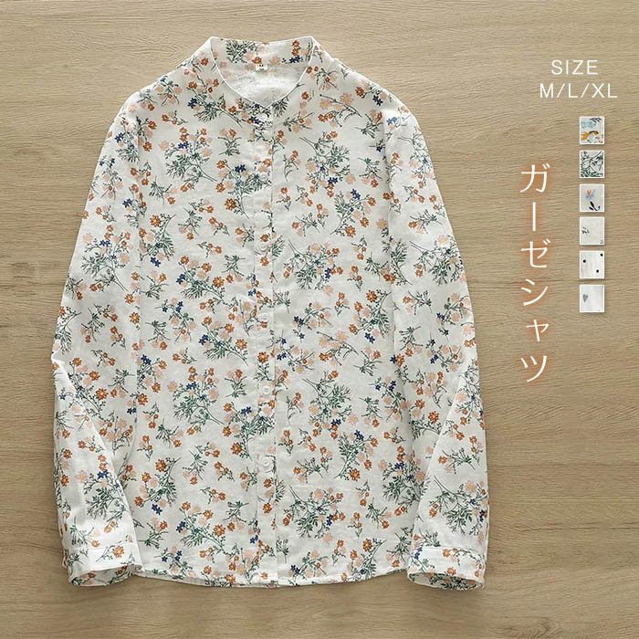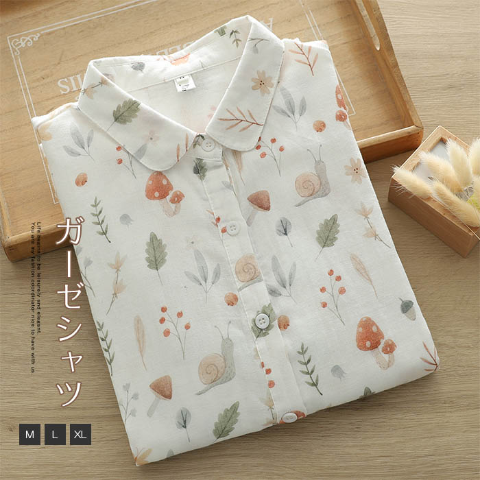 ガーゼ シャツ レディース 春秋 コットン 長袖 総柄 トップス コットン 2重ガーゼ レディースシャツ ダブルガーゼシャツ 綿 春 秋 シンプル シャツブラウス