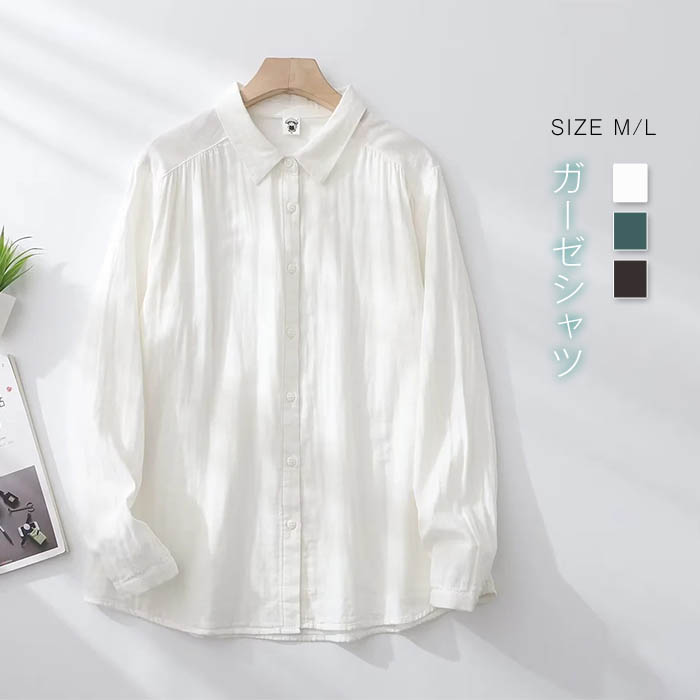 ガーゼシャツ コットン レディース 長袖 ダブルガーゼ 春秋 トップス ダブルガーゼシャツ ガーゼシャツ レディースシャツ レディーストップス