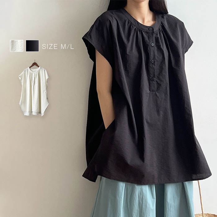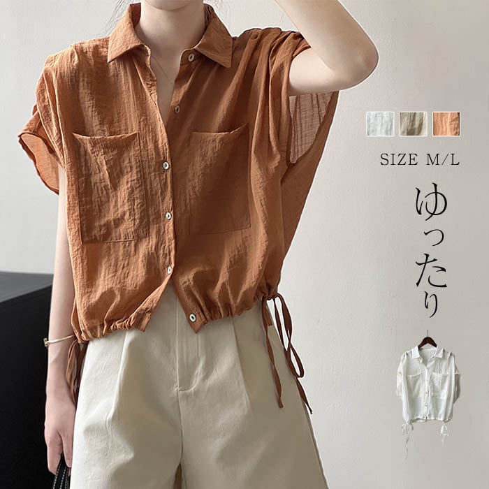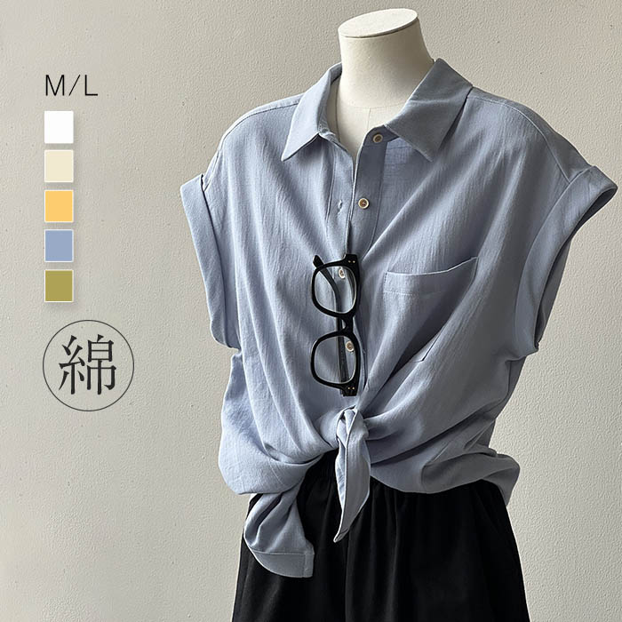 フレンチスリーブ シャツ シャツブラウス レ ディース 綿100% 半袖 トップス ブラウス 春 夏 羽織り 大人 カジュアル ナチュラル ベーシック 体型カバー ゆったり