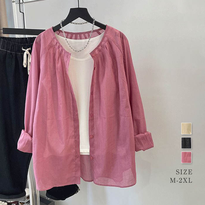 シャツ レディース ブラウス 夏 麻 長袖 シャツブラウス シースルー 薄手 冷房対策 涼しい uvカット 前開き 羽織り シンプル