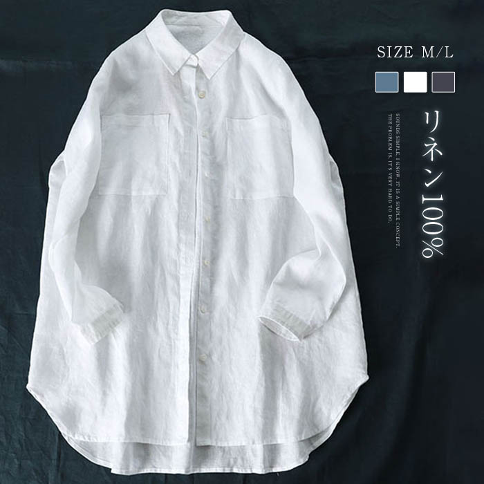 リネン シャツ レディース 長袖 ブラウス 夏 リネン100% 麻 シャツブラウス レディースブラウス トップス 前開き 羽織り シンプル