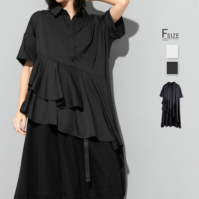 半袖 シャツ レディース ブラウス 夏 半袖 ティアード シャツブラウス レディースブラウス トップス チュニック アシンメトリー シンプル
