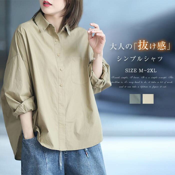 シャツ レディース シャツブラウス 長袖 長袖シャツ トップス コットン 綿 春 秋 春秋 カジュアル 無地 ドロップショルダー 通勤 通学 日常 ディリー