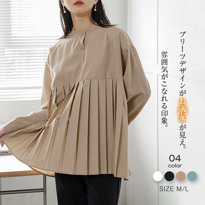 ブラウス レディース シャツブラウス 長袖 トップス チュニック 長袖ブラウス レディースブラウス プリーツブラウス 春 秋 春秋 カジュアル バンドカラー