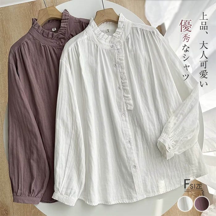 ガーゼシャツ レディース シャツブラウス 長袖 ガーゼ長袖 シャツトップス 長袖トップス コットン 綿 春秋 春 秋 カジュアル 無地 ナチュラル シンプル