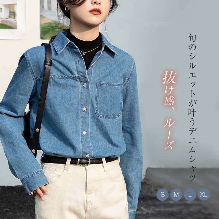 シャツ レディース デニム コットン 春秋 長袖 トップス レディースシャツ 長袖シャツ 長袖トップス デニムトップス デニムシャツ ウエスタンシャツ