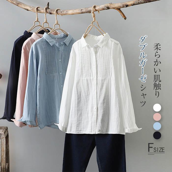 ガーゼシャツ コットン100% レディース 長袖 ダブルガーゼ 春秋 トップス ダブルガーゼシャツ ガーゼシャツ レディースシャツ レディーストップス