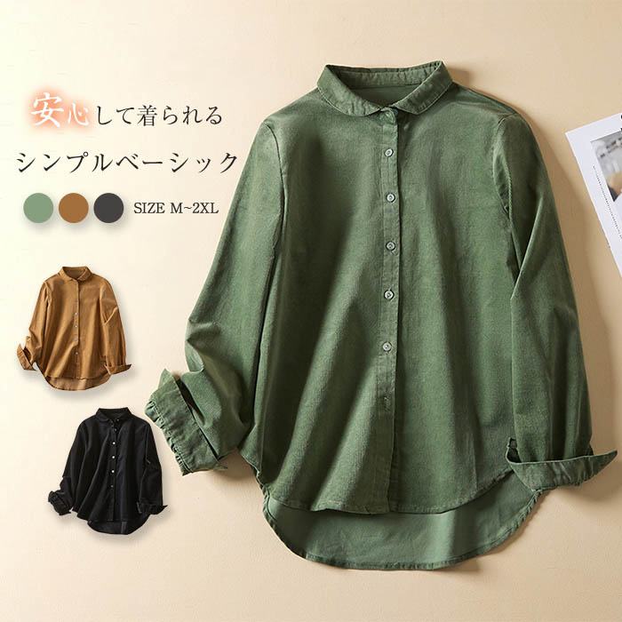 シャツ レディース 春秋 シャツブラウス レディースシャツ コーデュロイシャツ 長袖シャツ トップス 春 秋 コーデュロイ カジュアル 無地 長袖 前開き 襟あり