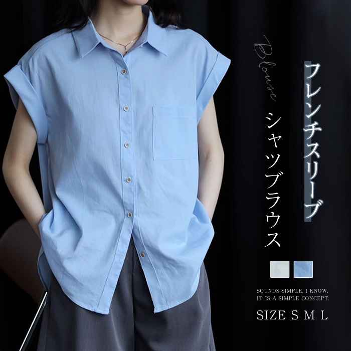 フレンチスリーブ シャツ シャツブラウス レ ディース 半袖 トップス ブラウス 春 夏 羽織り 大人 カジュアル ナチュラル ベーシック 体型カバー