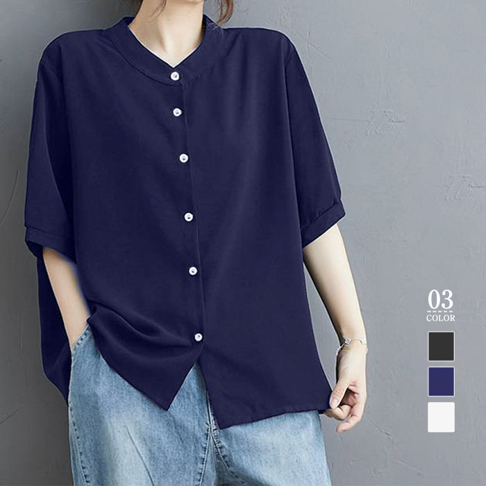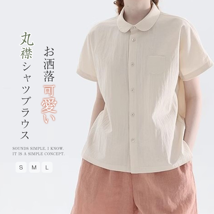 丸襟 シャツブラウス かわいい レディース シャツ ブラウス 半袖 夏 トップス カジュアル 半袖シャツ 夏トップス 無地 大きいサイズ 体型カバー