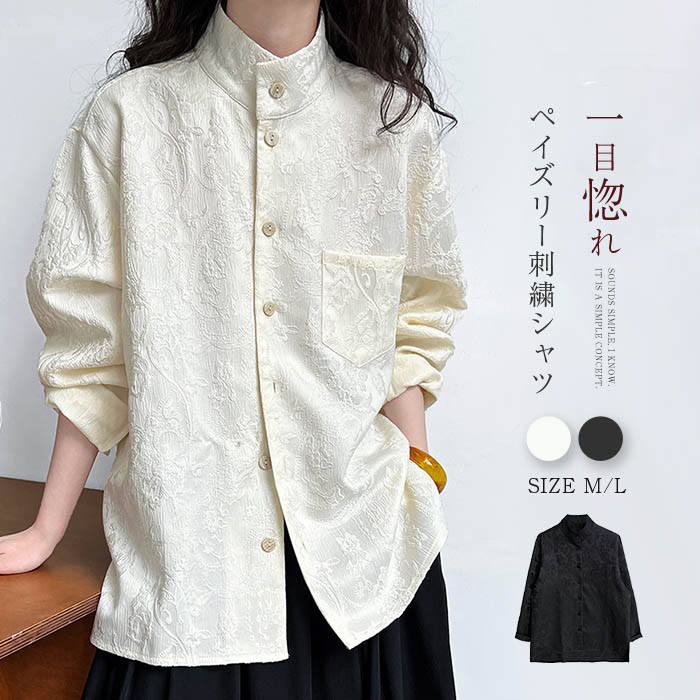 ペイズリー刺繍シャツ 長袖 花柄 スタンドカラー シャツ ブラウス 刺繍 シャツブラウス レディース トップス シャツブラウス 無地 無地シャツ