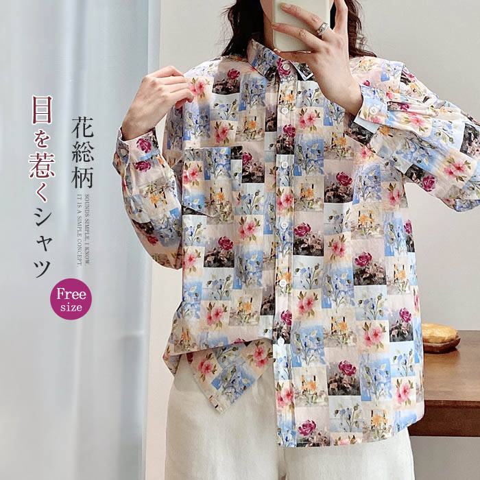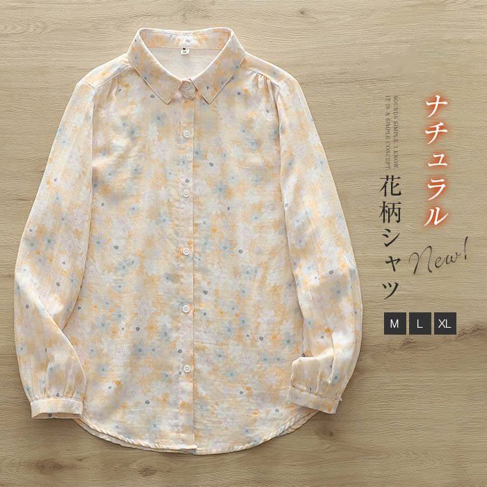 シャツ レディース コットン 春秋 長袖 総柄 トップス レディースシャツ 柄シャツ ブラウス 柄 シャツブラウス レディーストップス 花柄トップス