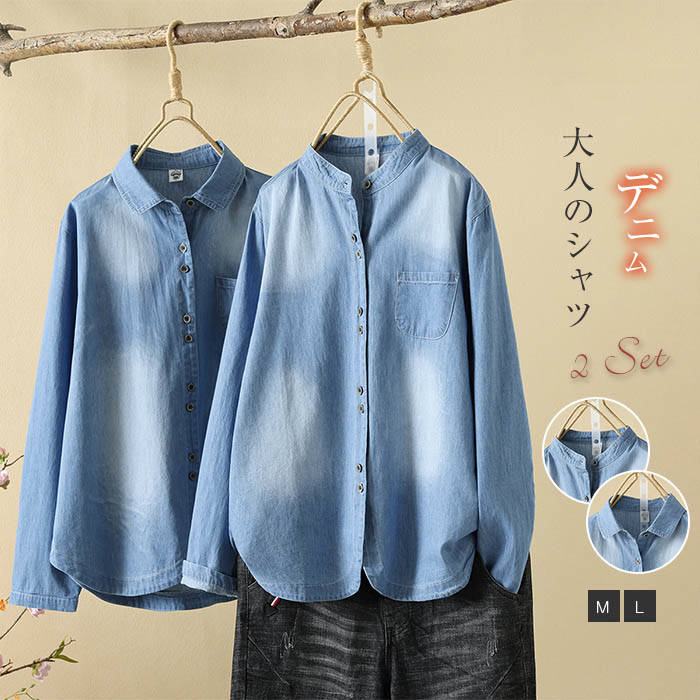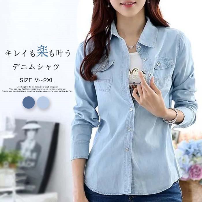 シャツ レディース デニム コットン 春秋 長袖 トップス レディースシャツ 長袖シャツ 長袖トップス デニムトップス デニムシャツ ウエスタンシャツ デニムシャツ