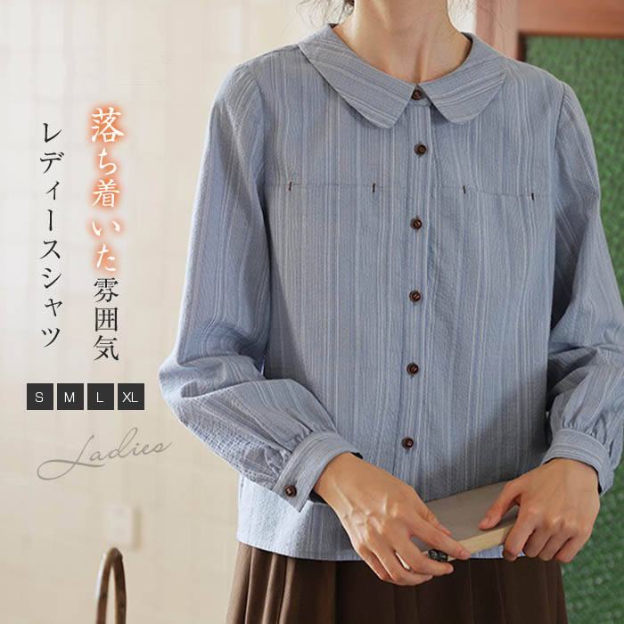 綿混 シャツ 秋 レディース 長袖 トップス コットン 可愛い レディースシャツ シャツブラウス 柄シャツ 長袖シャツ 羽織り 長袖シャツ ブラウス 長袖トップス 丸衿