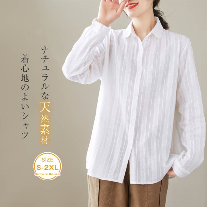 コットン100% レディーストップス ガーゼシャツ 春秋 森ガール 着痩せ 着心地良い 快適 肌触り良い ダブルガーゼ 羽織り 柔軟 通勤 きちんと 日常 普段着 20代 30代 50代 40代ス 着