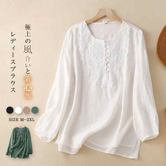 ブラウス レディース 長袖 春 夏 秋 春夏秋 コットン 長袖ブラウス レディースブラウス シンプル 柄ブラウス 刺繍 無地 クルーネック 大人 レイヤード 20代 30代 40代 50代