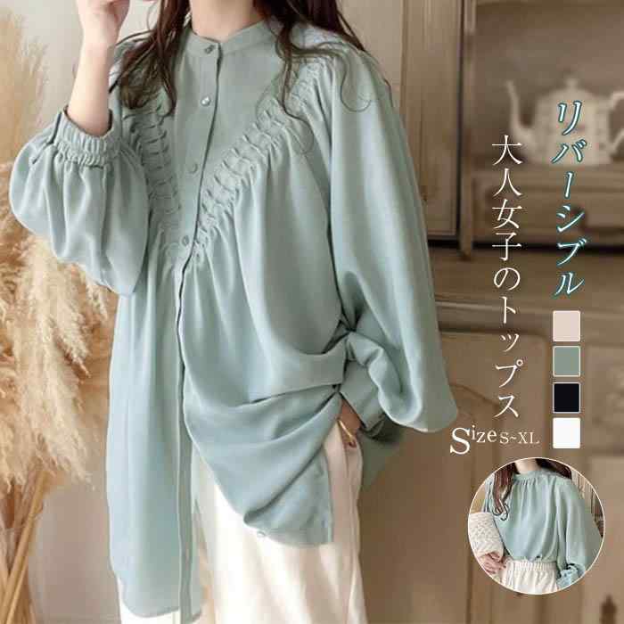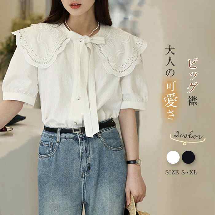 シャツ レディース 半袖 春 夏 秋 春夏秋 シャツブラウス レディースシャツ 無地 ビッグカラー リボン ギャザー パフ袖 パフ袖 可愛い カワイイ 若見え エレガント 20代 30代 40代 50