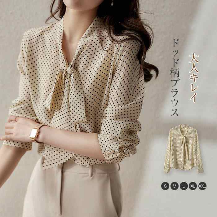 ブラウス レディース 長袖 トップス 夏 レディースブラウス がら 柄シャツ 春 春秋 長袖ブラウス シャツブラウス スカーフカラー ボウタイ ドット 着回し 20代 30代 40代 50代