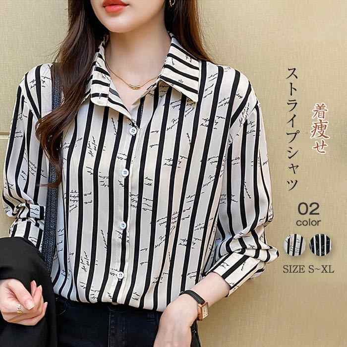 シャツ レディース 長袖 トップス シャツブラウス レディースシャツ 長袖シャツ 長袖トップス ストライプ 柄 柄シャツ 春 夏 秋 春秋 カジュアル シンプル スッキリ 20代 30代 40代