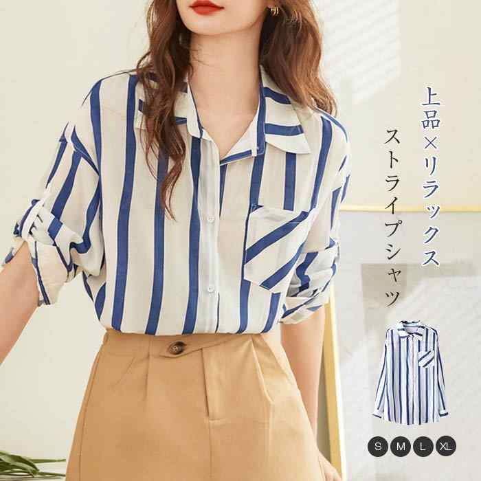 シャツ レディース 長袖 トップス 春 夏 レディースシャツ 春 春秋 長袖シャツ カジュアル オシャレ ストライプ 着回し レイヤード 着痩せ 華奢見え 個性 抜け感 20代 30代 40代 50代